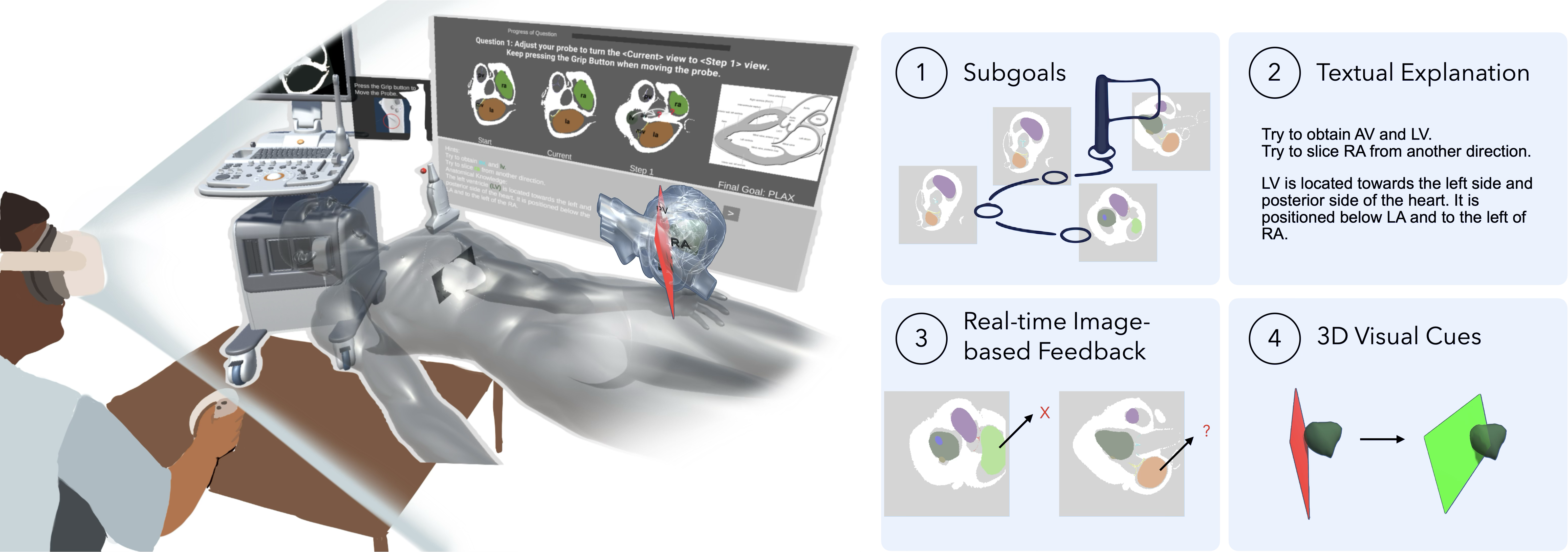 My research lies at the intersection of Human-Computer Interaction (HCI) and medical education, with a focus on enhancing the visual understanding in medical training. Medical procedures are inherently visual tasks that require learners to know where to look, how to interpret complex visual cues, and how to translate those perceptions into precise actions. Due to limited access to experts, trainees often learn from videos and simulations that lack personalized and interactive feedback. My work bridges this gap by designing human–AI systems that enable interactive learning experiences grounded in multimodal data sources, including video, gaze, speech, hand gestures, and etc.
